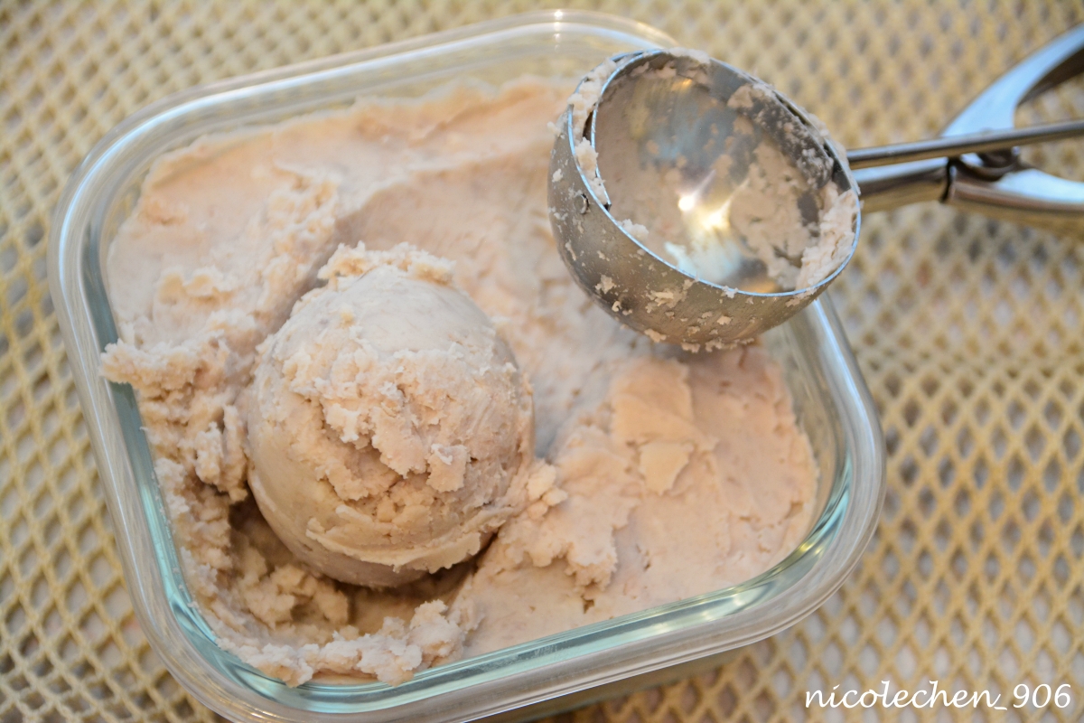 - 芋泥用冰淇淋勺挖兩勺放入碗中。