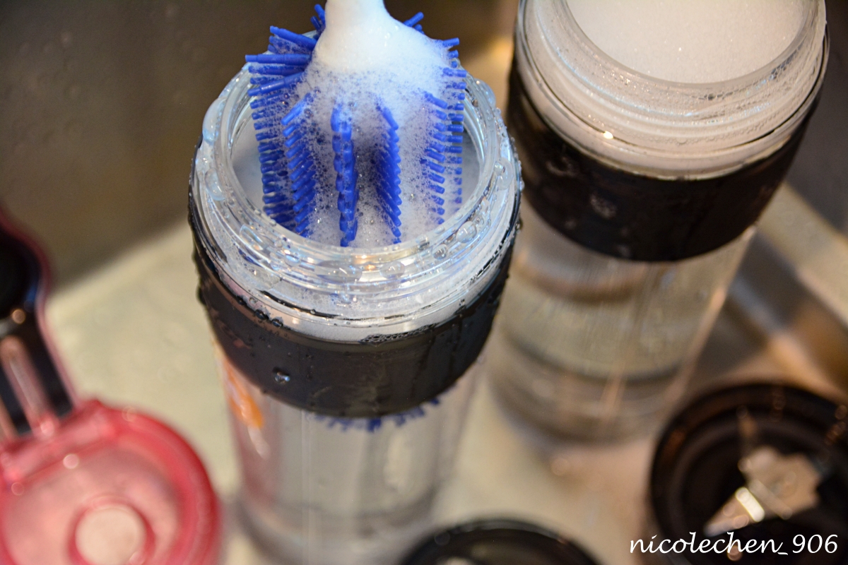 我自己還有加買Oster Ball Mason Jar 的梅森瓶替杯,讓Leila 在車上喝時更好拿,因為這款有把手設計;但梅森瓶的瓶口跟瓶身式有弧度的,在刷洗時要多留意,除了這點我覺得梅森瓶對小朋友來說更友善一些,所以有小朋友的家庭可以去加買一組讓小朋友用。