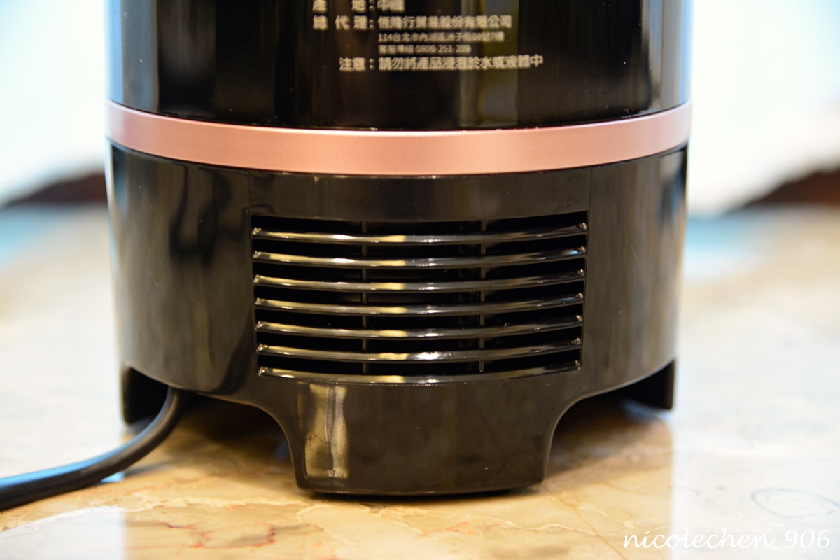主機底部有三個止滑墊,運轉時不容易位移,底部跟側邊都有做散熱排風口,提升果汁機使用壽命。