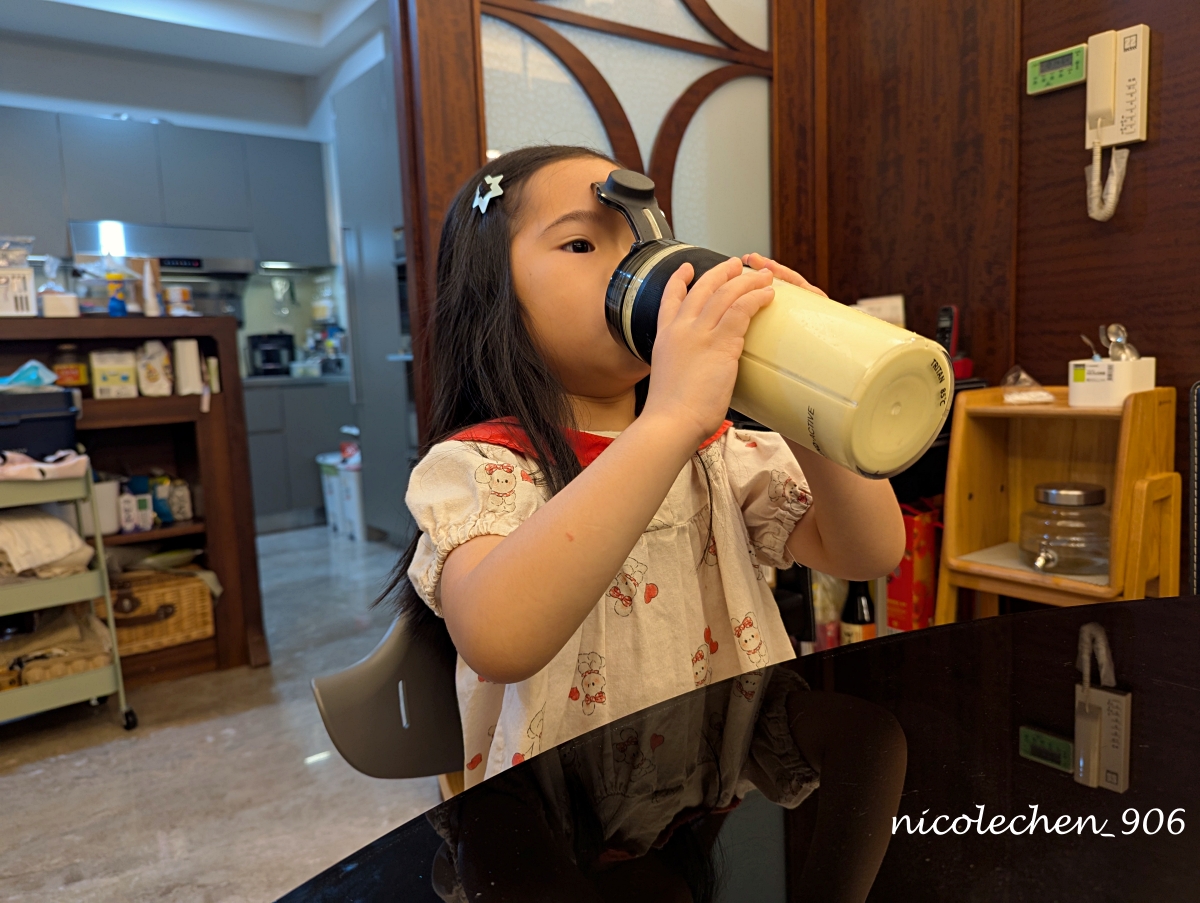 Leila 很愛喝酪梨牛奶、木瓜牛奶、香蕉牛奶這類型的果汁,我常常會打一杯讓他上學時在車上喝,順便可以讓她多攝取牛奶,幫助成長。