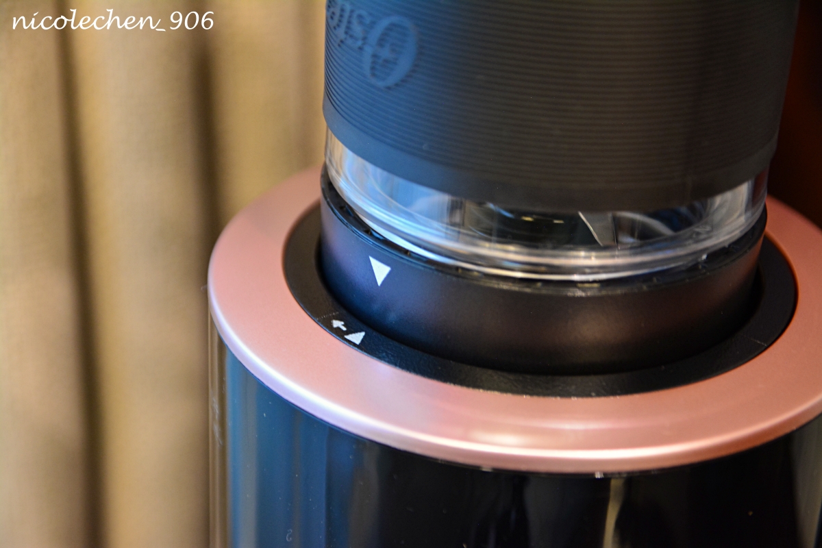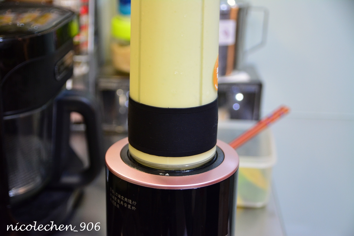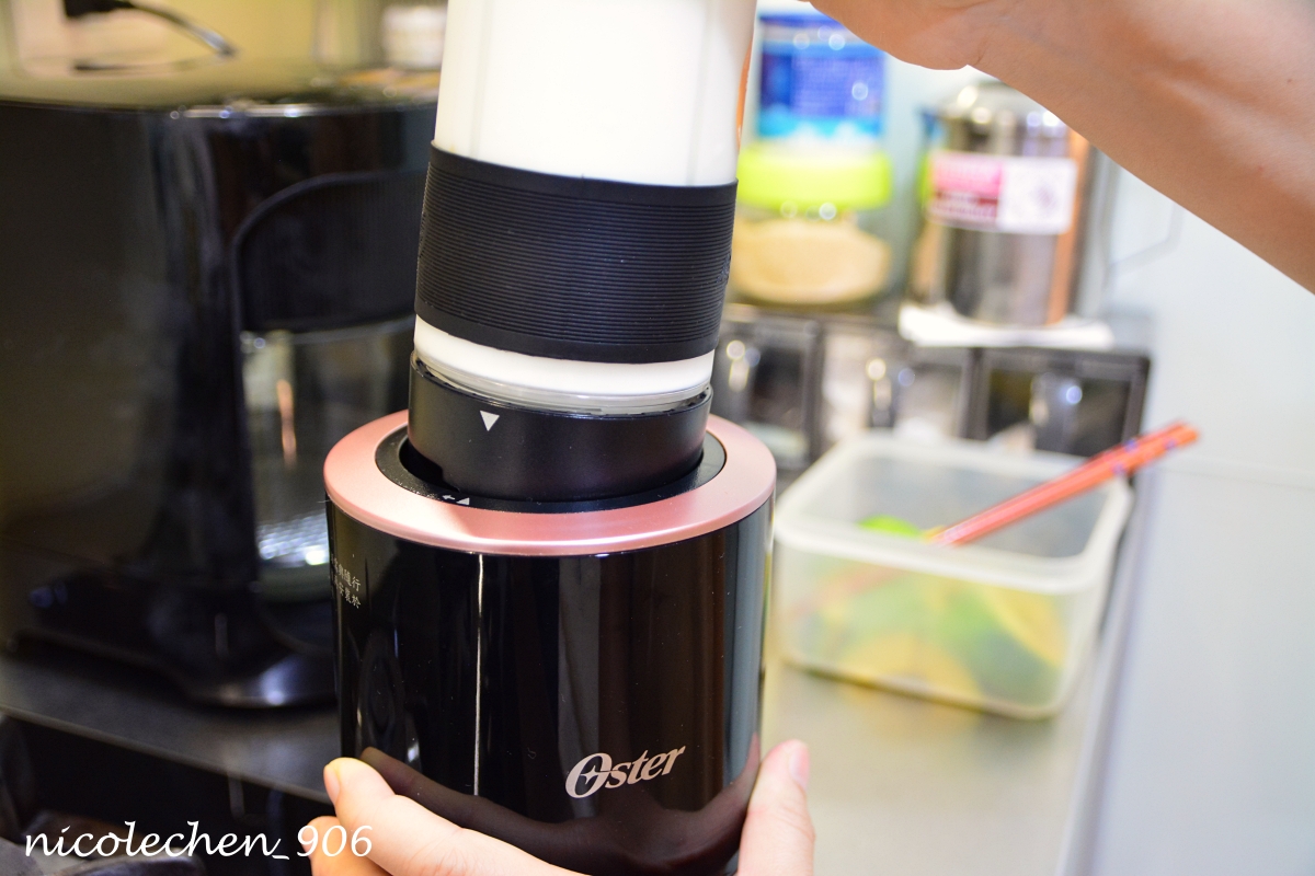 第六步:主機跟專用杯的三角形對準並同時對準卡榫,會開始自動運轉。